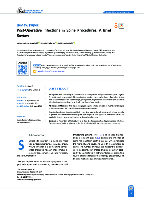 (PDF) Post-Operative Infections in Spine Procedures: A Brief Review