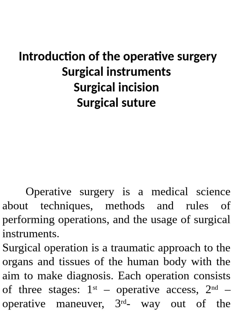 Introduction of The Operative Surgery | PDF | Surgical Suture | Surgery
