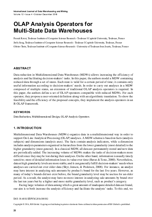 (PDF) OLAP Analysis Operators for Multi-State Data Warehouses