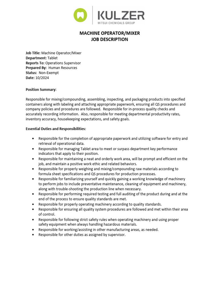 Machine Operator/Mixer Job Overview | PDF | Occupational Safety And Health