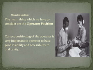 Dental chair, patient and operator position | PPTX | Dental Health ...
