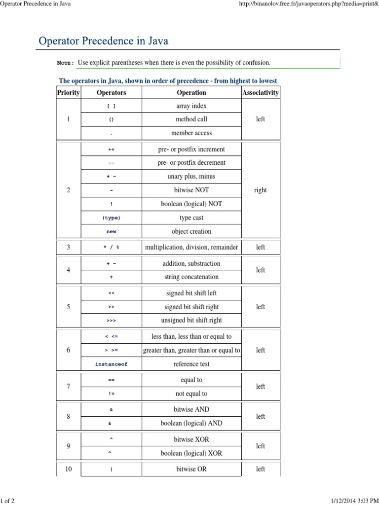 Java Operator Precedence Chart : Ashur Cherry : Free Download, Borrow ...