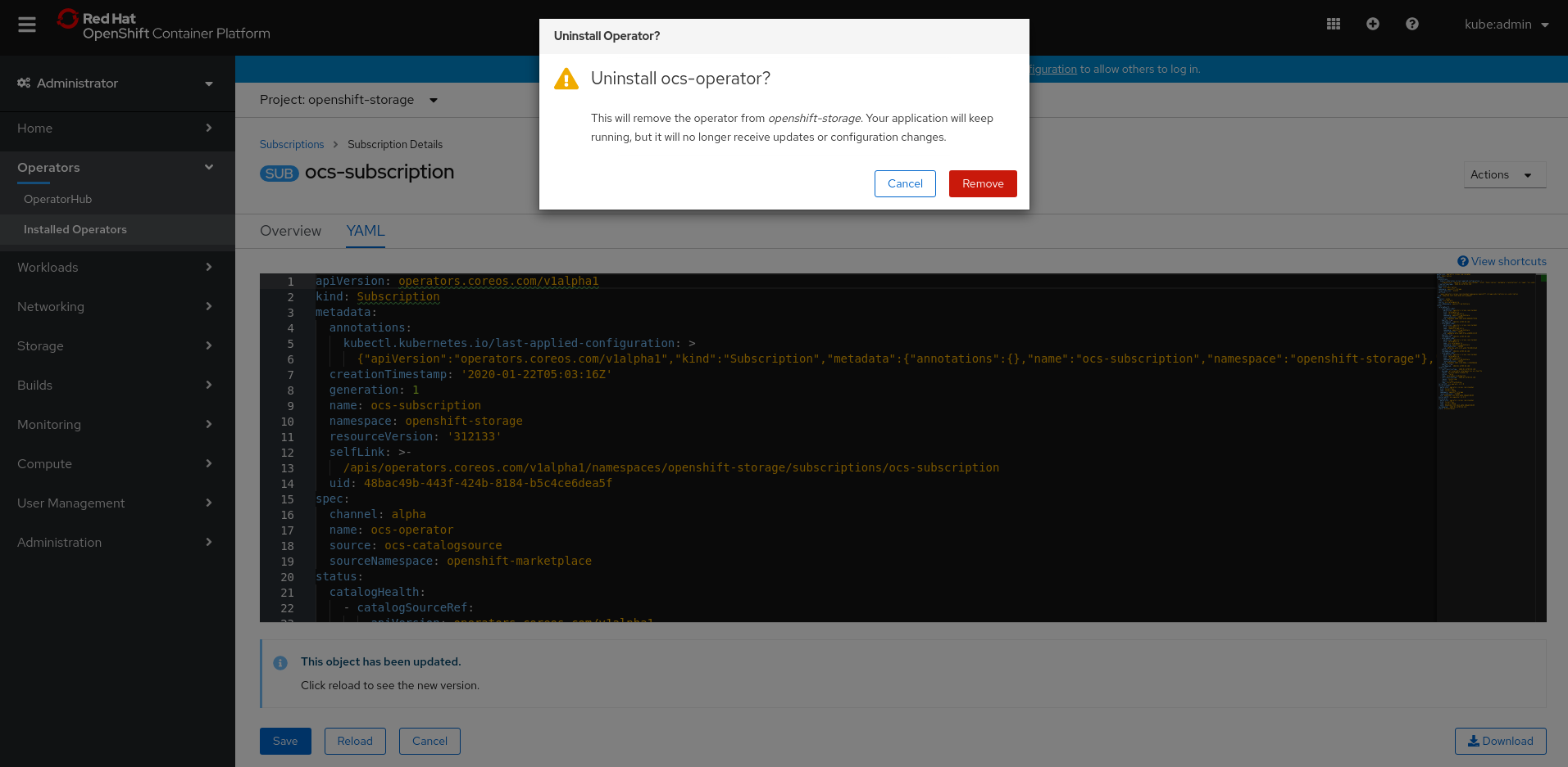 OCS Operator removing subscription behaving differently in CLI and ...