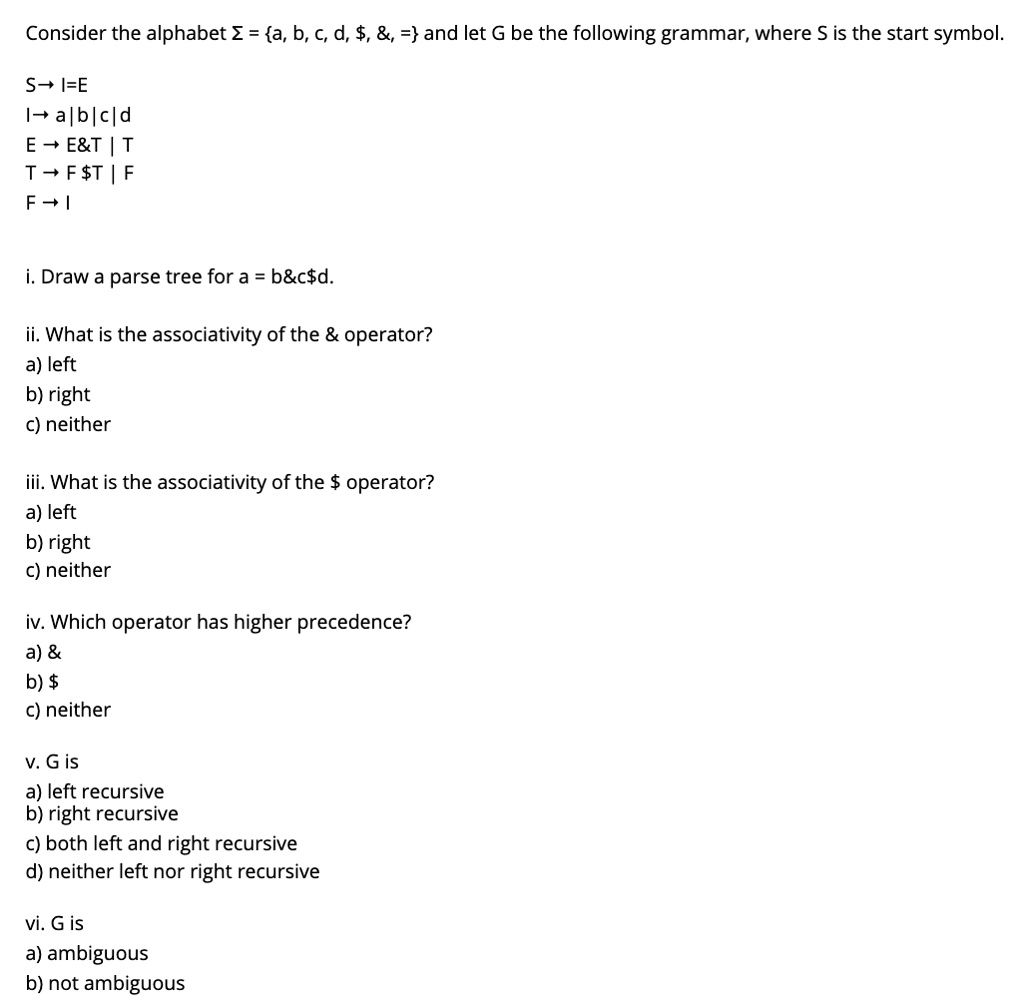 Consider the alphabet Σ = {a, b, c, d, $, &, =} and let G be the ...