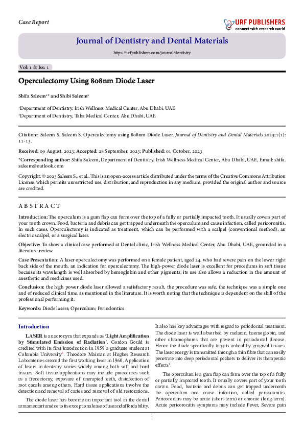 (PDF) Operculectomy Using 808nm Diode Laser