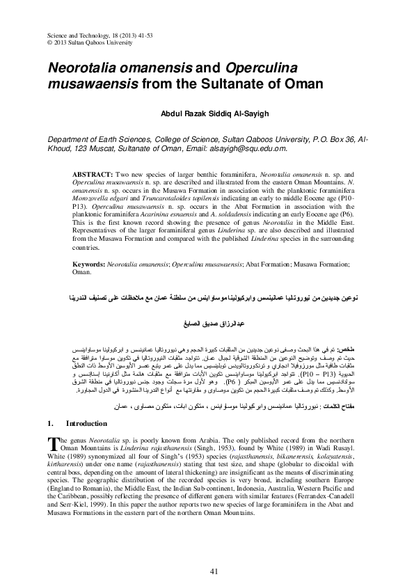 (PDF) Neorotalia omanensis and Operculina musawaensis from the ...