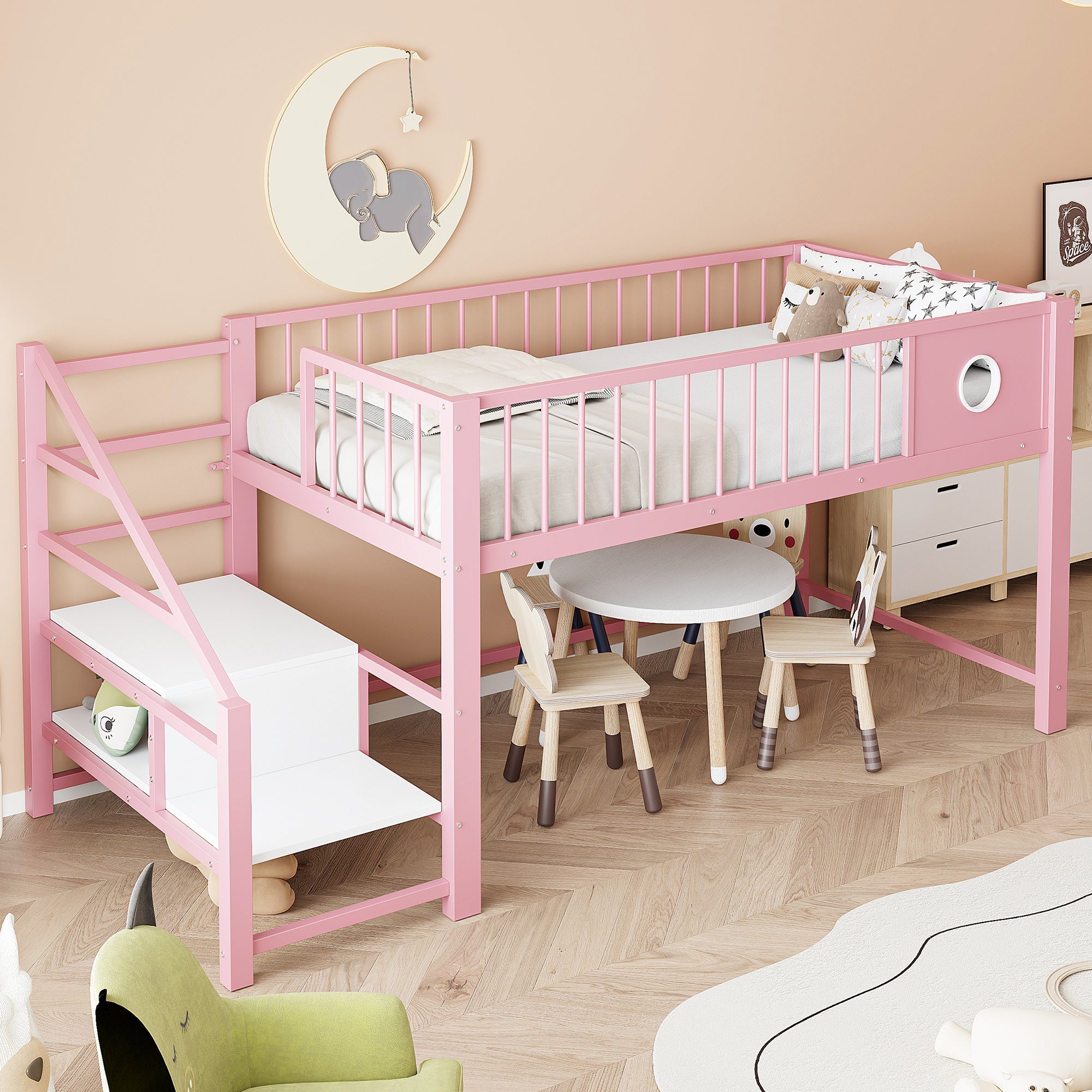 Lit mezzanine bas 90x200cm,Lit simple pour enfant avec escalier de ...