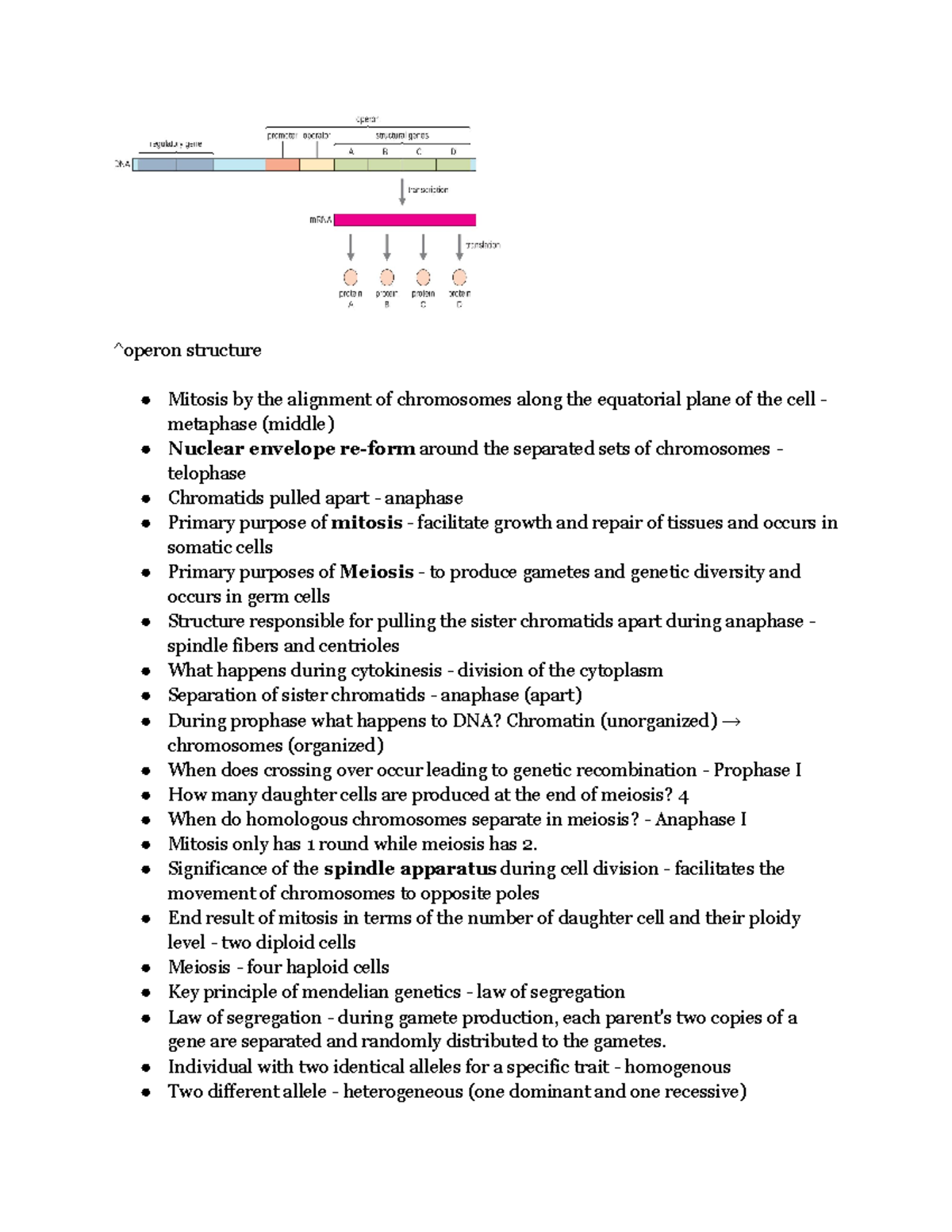 Bio exam #3 notes - ^operon structure Mitosis by the alignment of ...
