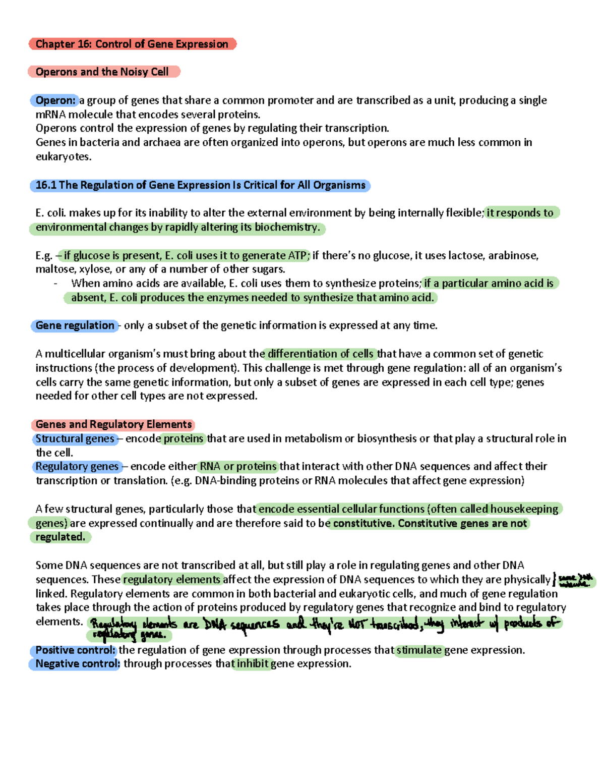Ch 16 operons - Lecture notes 9 - Prokaryotic gene expression is ...
