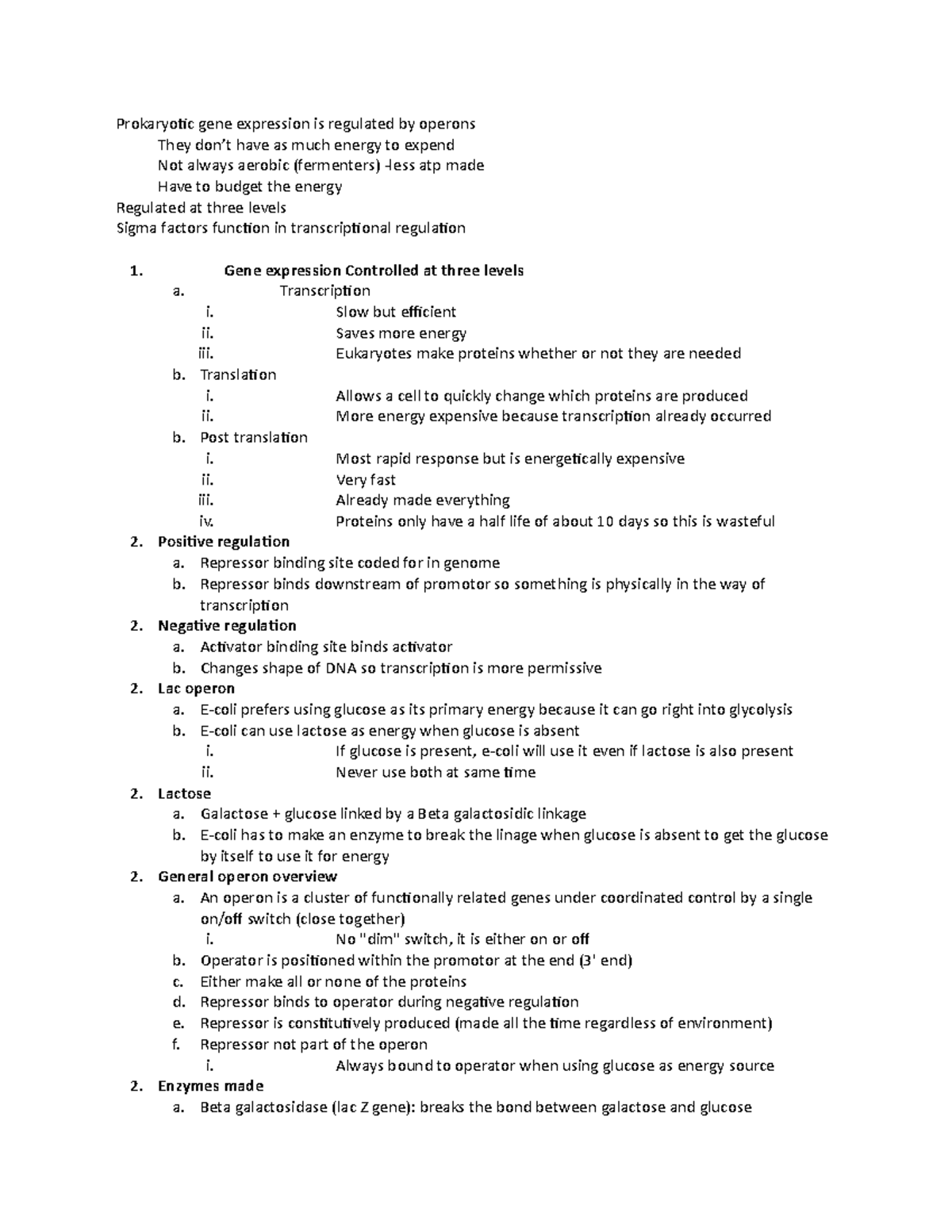 Lac Operon Notes | PDF | Repressor | Operon