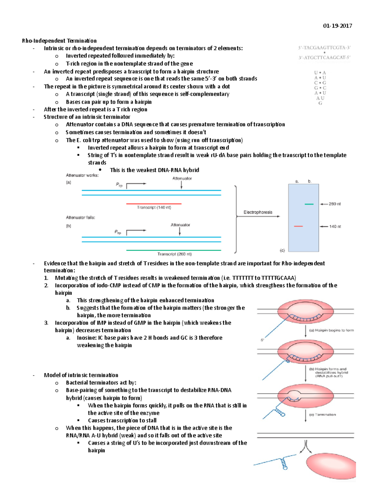 5 - Operons - Lecture notes 5 - 01-19- Rho-Independent Termination ...