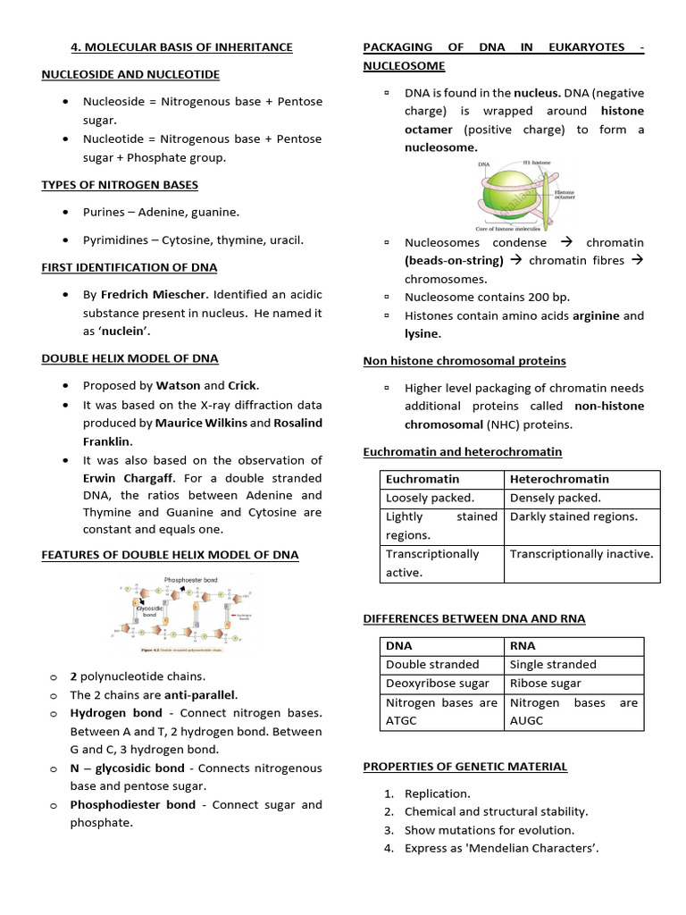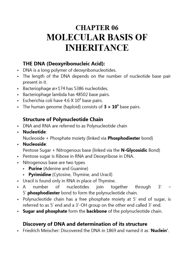 NOTES- MOLECULAR BASIS OF INHERITANCE | PDF | Operon | Dna Replication