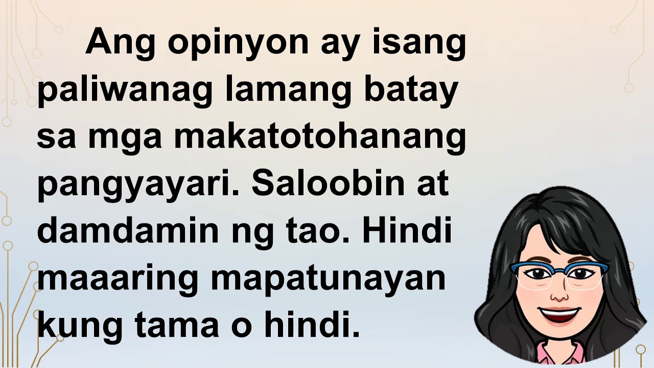 sumulat ng 5 halimbawa ng opinyon at 5 halimbawa ng katotohanan ...