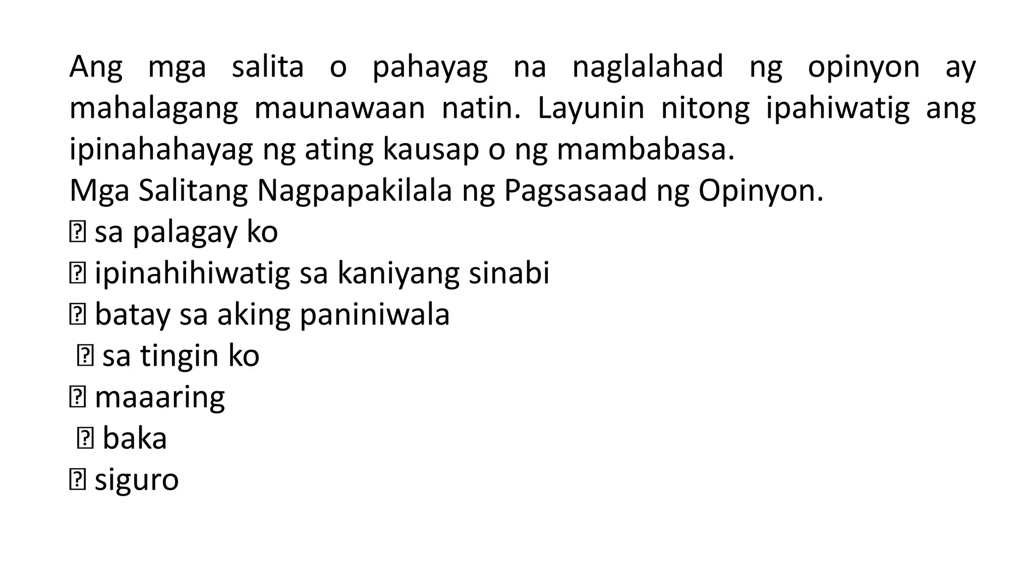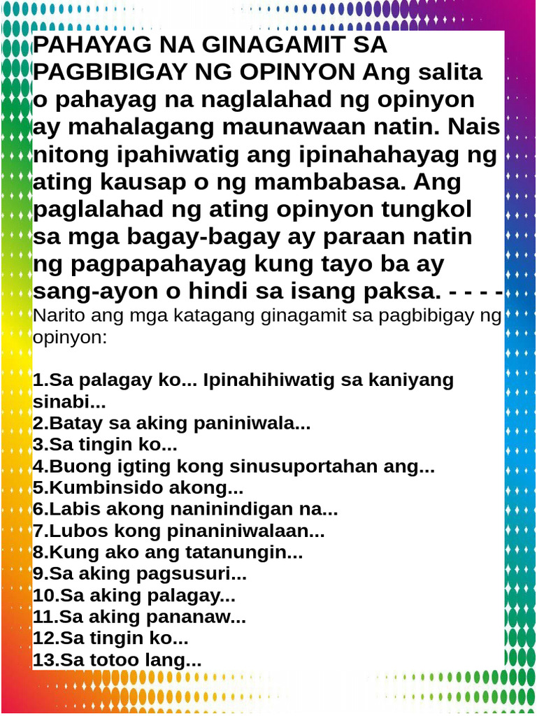 Mga Pahayag Na Ginagamit Sa Pagbibigay Opinyon Filipino Gramatika | My ...