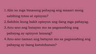 KATOTOHANAN AT OPINYON grade 9 Filipino .pptx