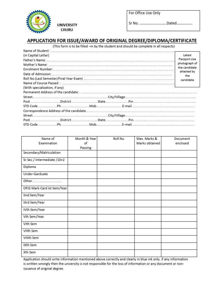 OPJS University Degree Certificate Application | PDF | Qualifications