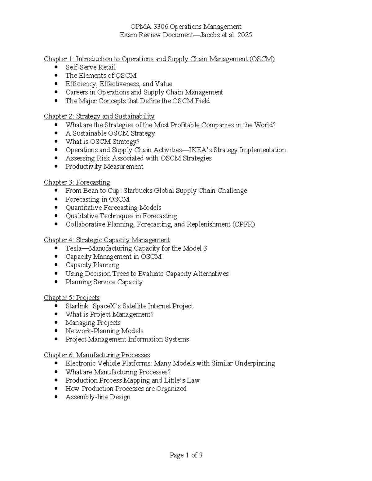 OPMA 3306 Exam Review: Key Concepts in Operations & Supply Chain ...
