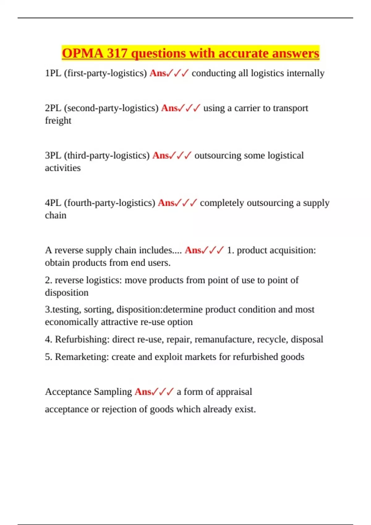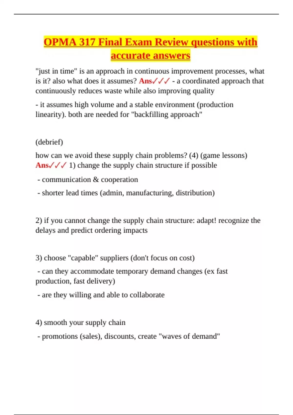 OPMA 317 – Comprehensive Q&A Guide – Verified Answers – Logistics, Lean ...