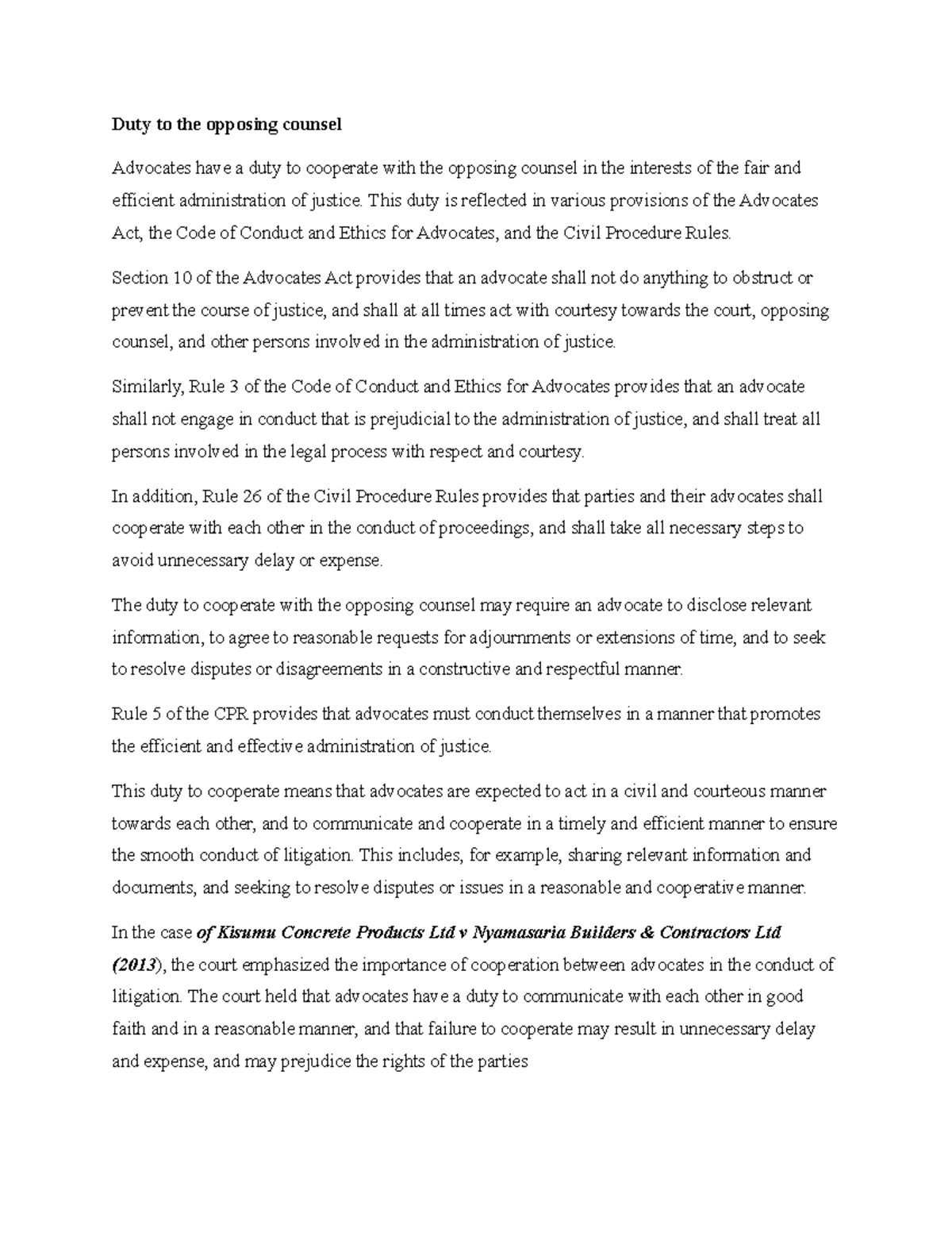 Duty to Opposing Counsel: Ethical Cooperation in Litigation - Studocu