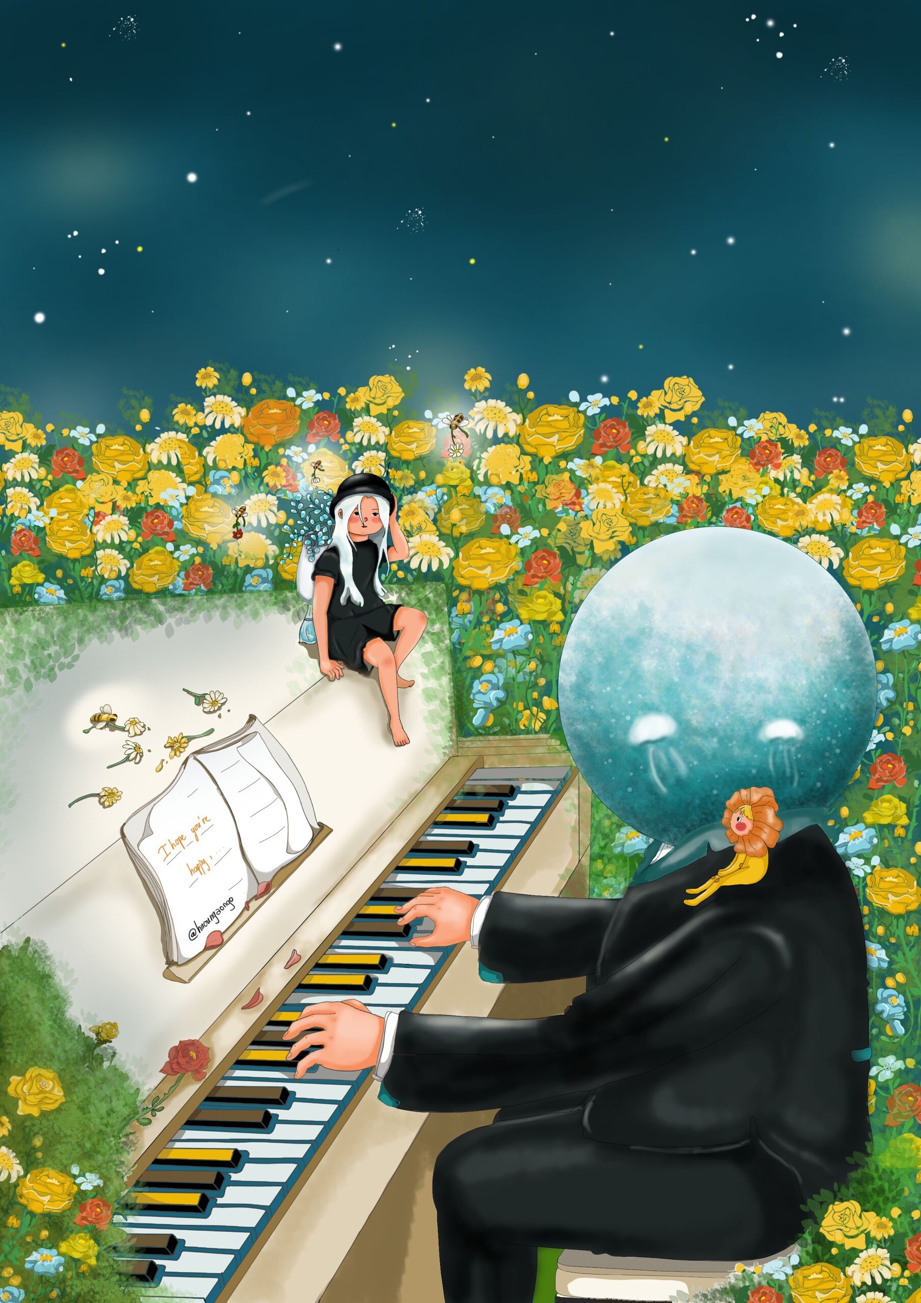 I drew Sunny playing the piano : r/OMORI