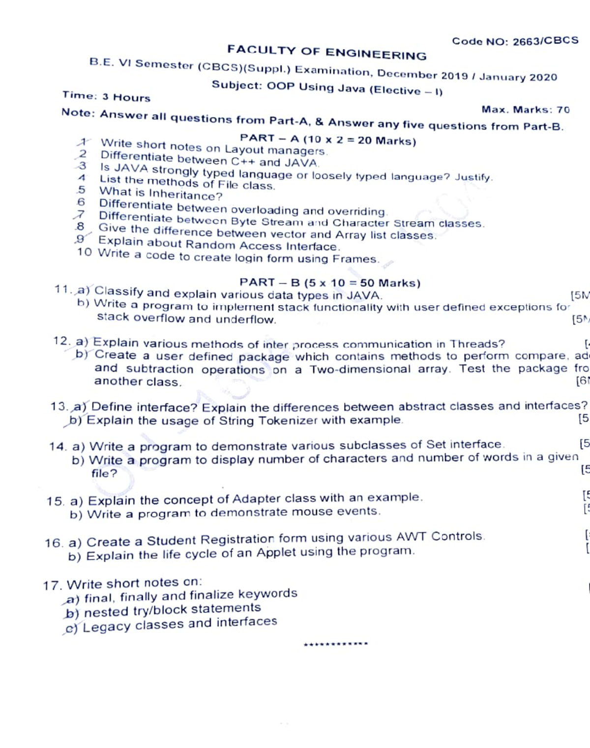 Object Oriented Programming Using Java - I Previous Year Question Paper ...