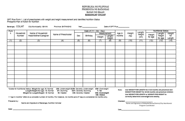 OPT Plus Form 1A - WT 4 Age | PDF | Diet & Nutrition | Nutrition