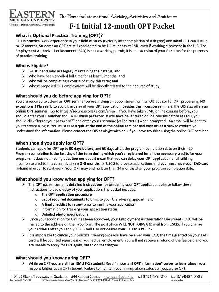 PPT - F-1 Optional Practical Training (OPT ) Application Guide ...