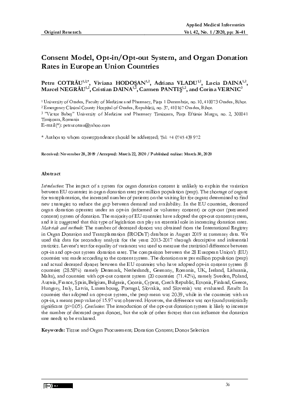 (PDF) Consent model, opt-in/opt-out system, and organ donation rates in ...