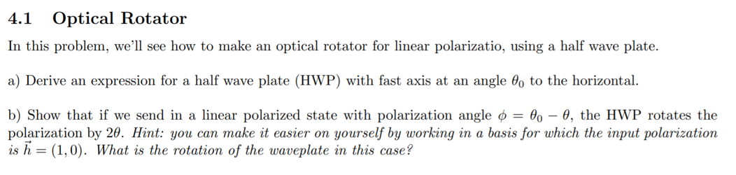 Solved 4.1 Optical Rotator In this problem, we'll see how to | Chegg.com