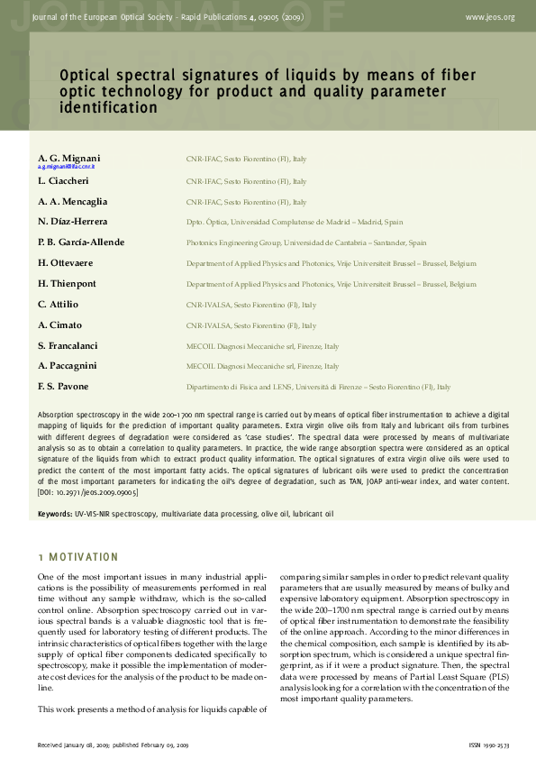(PDF) Optical spectral signatures of liquids by means of fiber optic ...