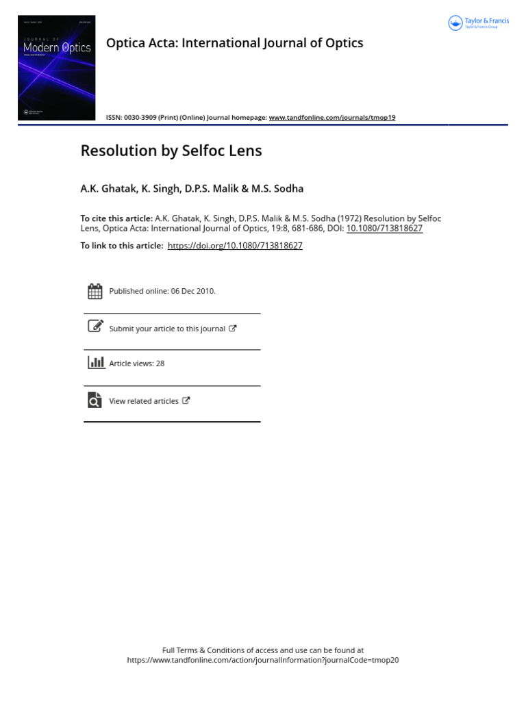 Resolution by Selfoc Lens | PDF | Optics | Angular Resolution