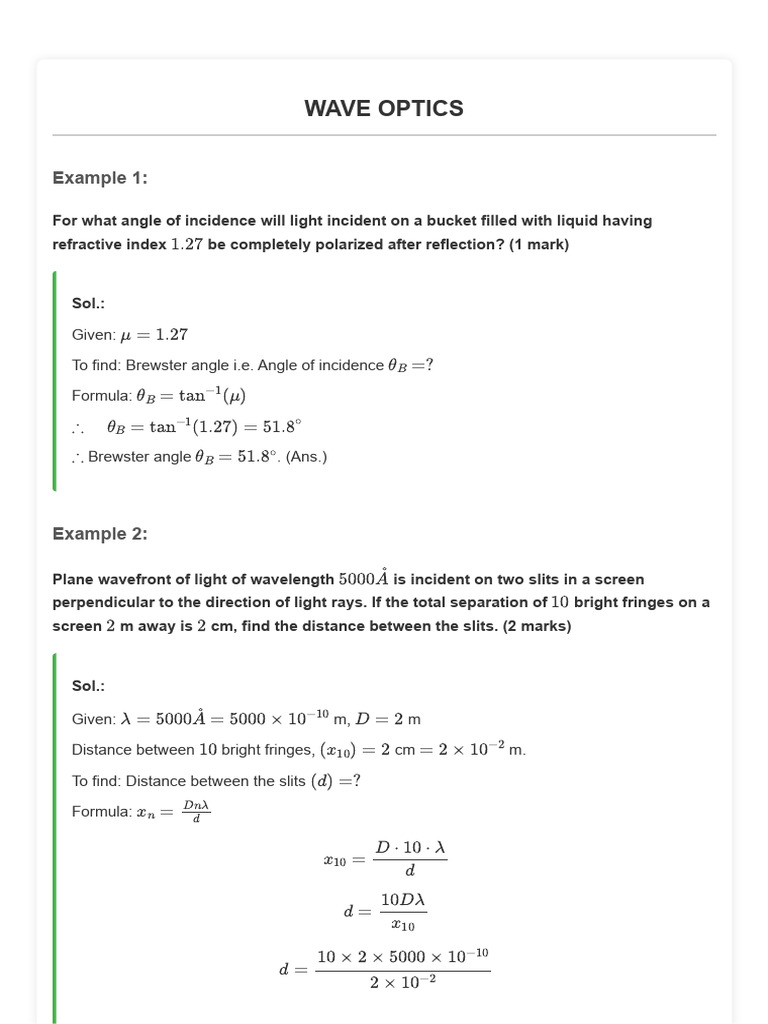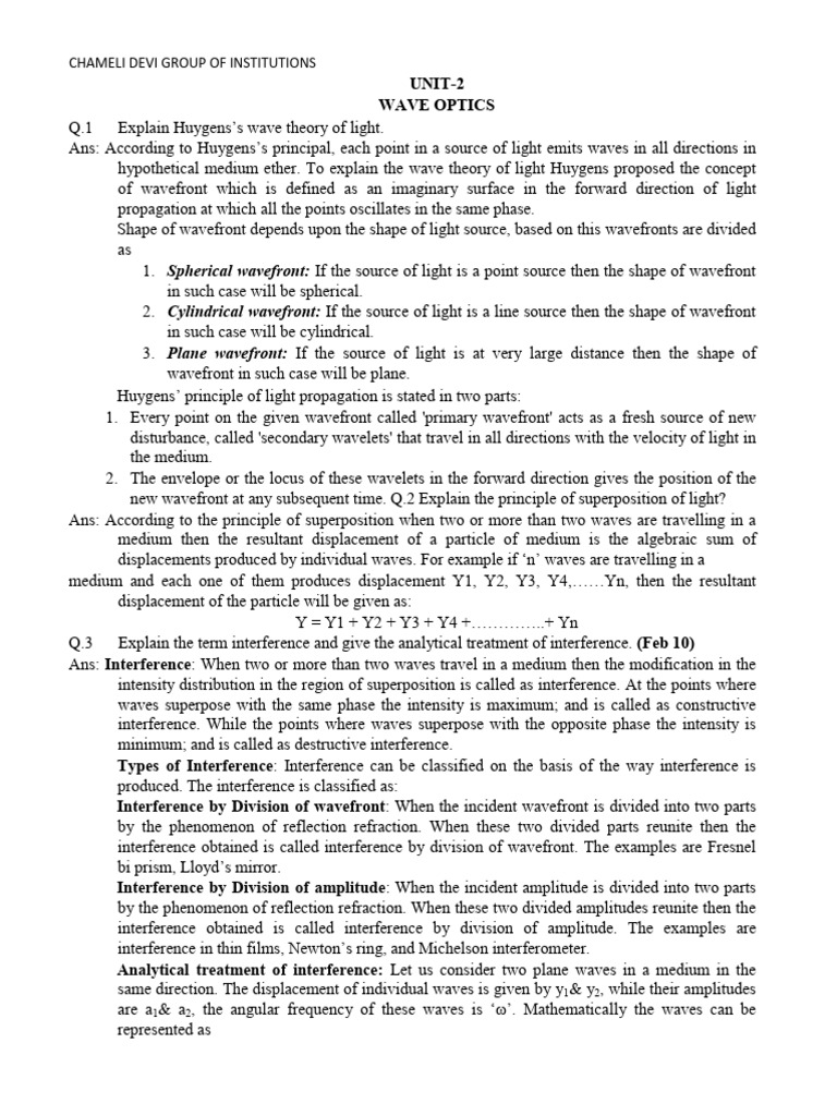 CH 10 Wave Optics | PDF | Diffraction | Angular Resolution