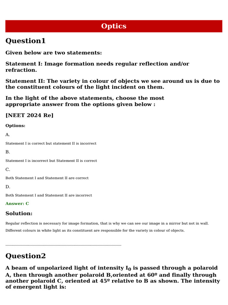 2 Ray Optics 2 | PDF | Angular Resolution | Dispersion (Optics)