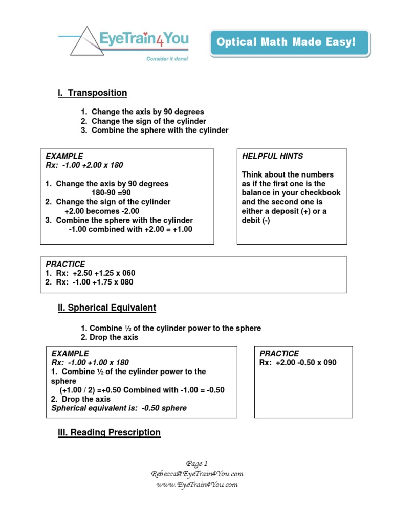Optical Math Handout RJohnson PDF | PDF | Optics | Atomic