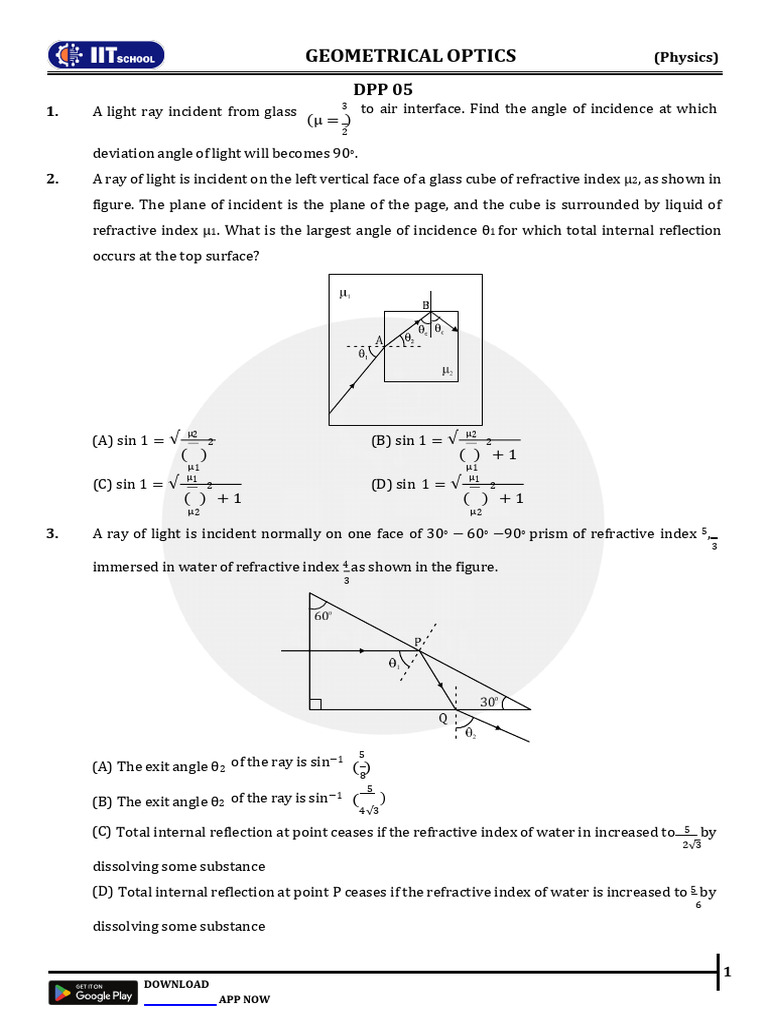 DPP - 03 - Geometrical Optics | PDF | Refraction | Science & Mathematics