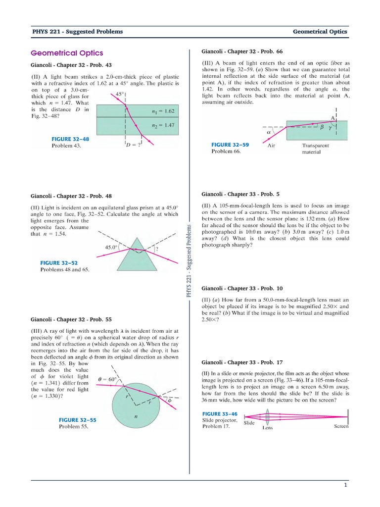 PHY1220 Practice 06A - Geometrical Optics - Problems.docx - PHY1220 ...