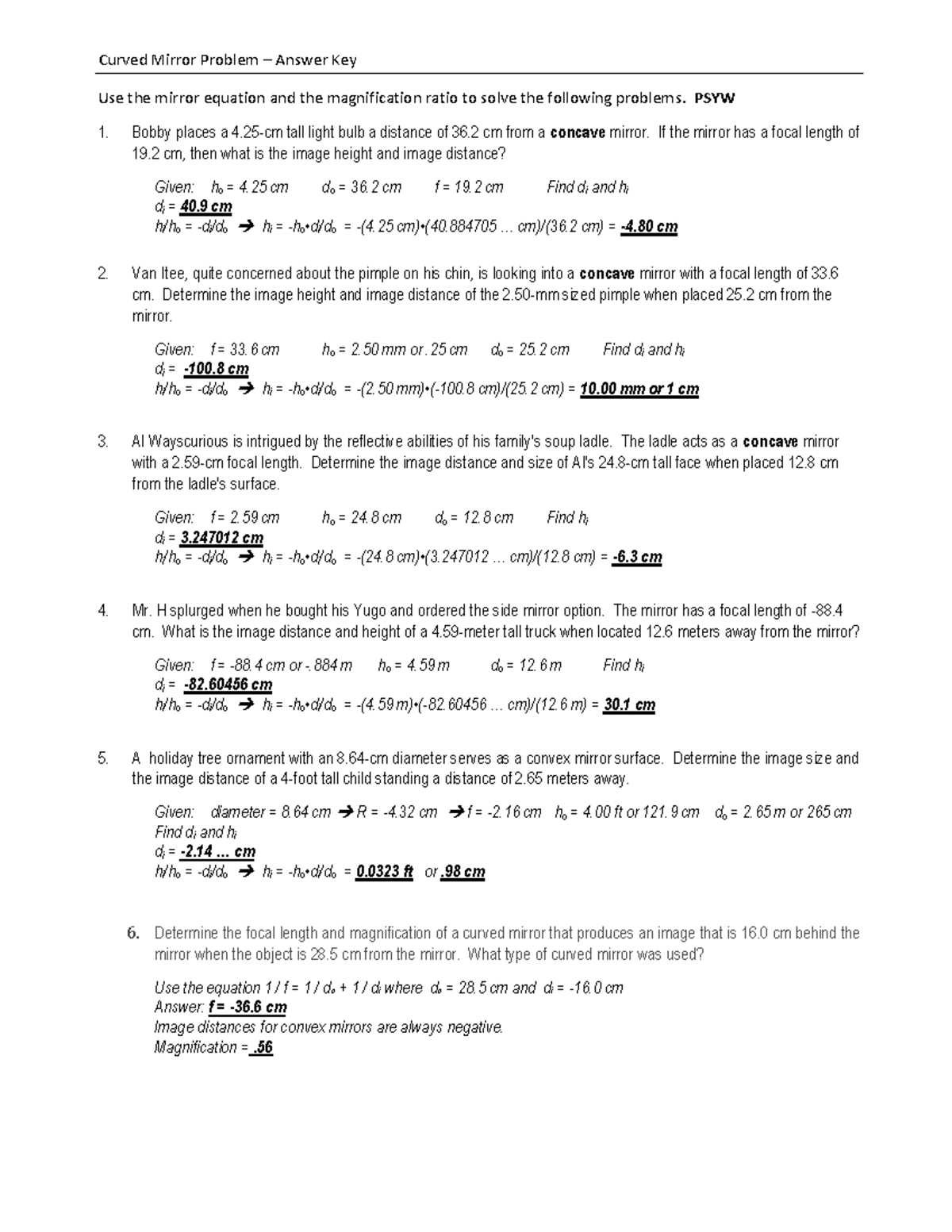 4-25+Optics+Practice+Problems+KEY - Curved Mirror Problem – Answer Key ...