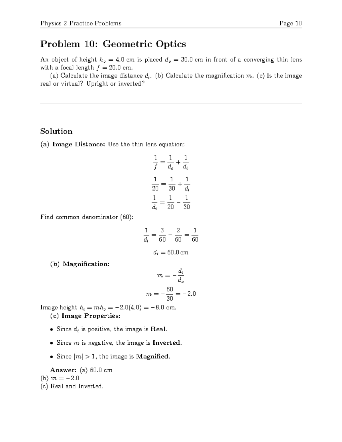 Physics 2 Practice Problems: Geometric Optics Analysis - Studocu