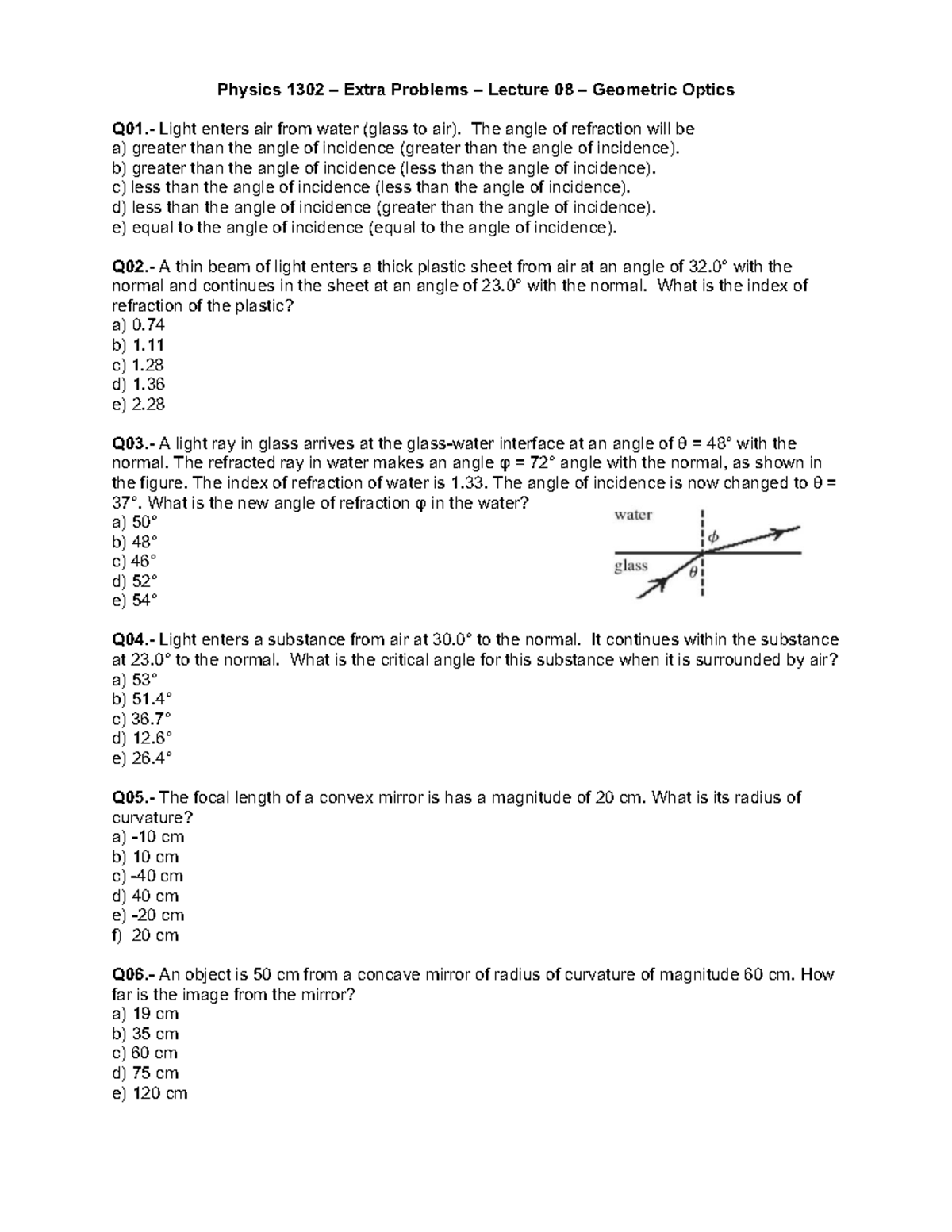 Physics 1302 extra problems lecture 08: Geometric optics and refraction ...