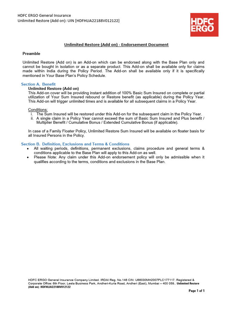 Optima restore health insurance HDFC_Ergo_Health 7008762353 | PDF