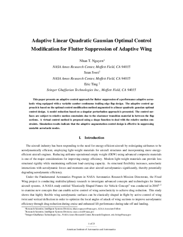 (PDF) Adaptive Linear Quadratic Gaussian Optimal Control Modification ...
