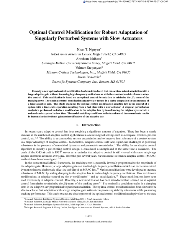 (PDF) Optimal Control Modification for Robust Adaptation of Singularly ...
