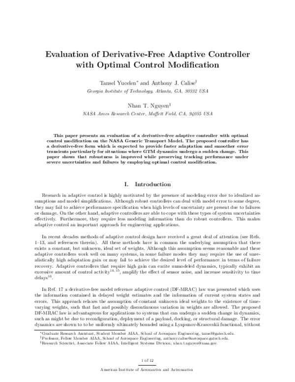 (PDF) Evaluation of Derivative-Free Adaptive Controller with Optimal ...