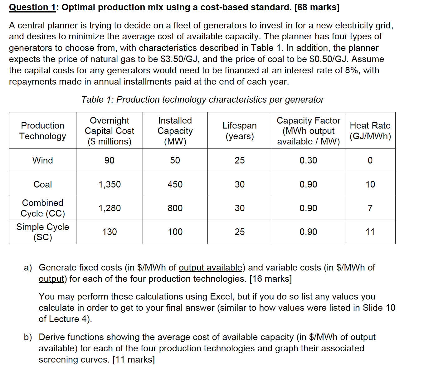 Solved Question 1: Optimal production mix using a cost-based | Chegg.com