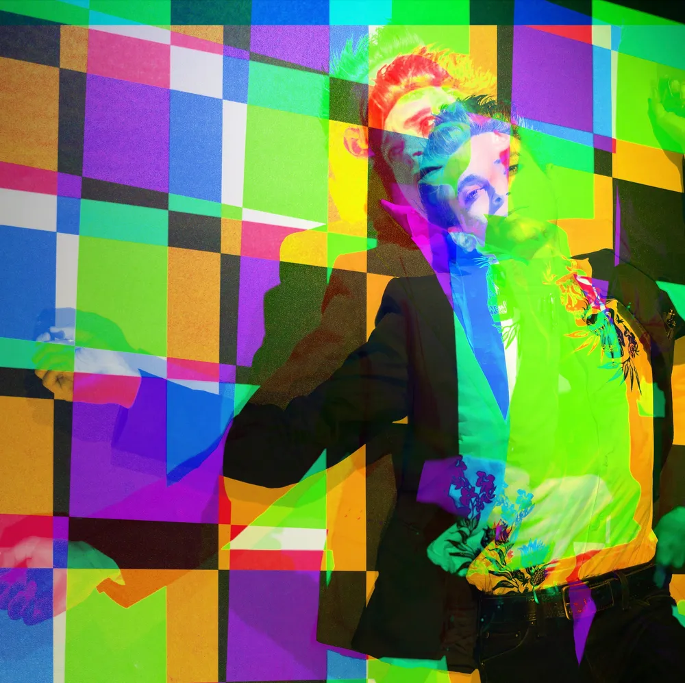Bright and joyful vector illustration of a person with a rainbow ...