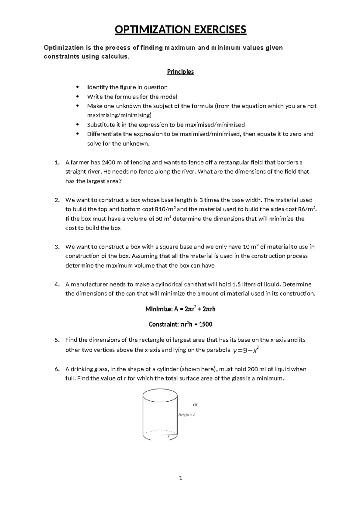 Optimization Practice Problems Worksheet