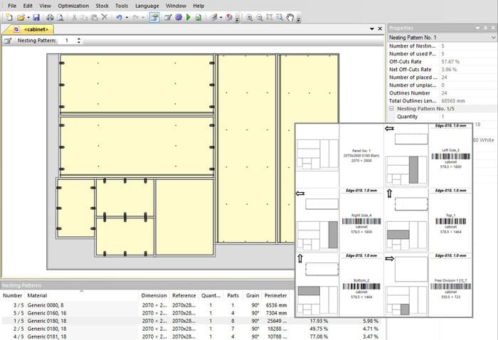 OptiNest nesting patterns and optimization report | WOOD DESIGNER