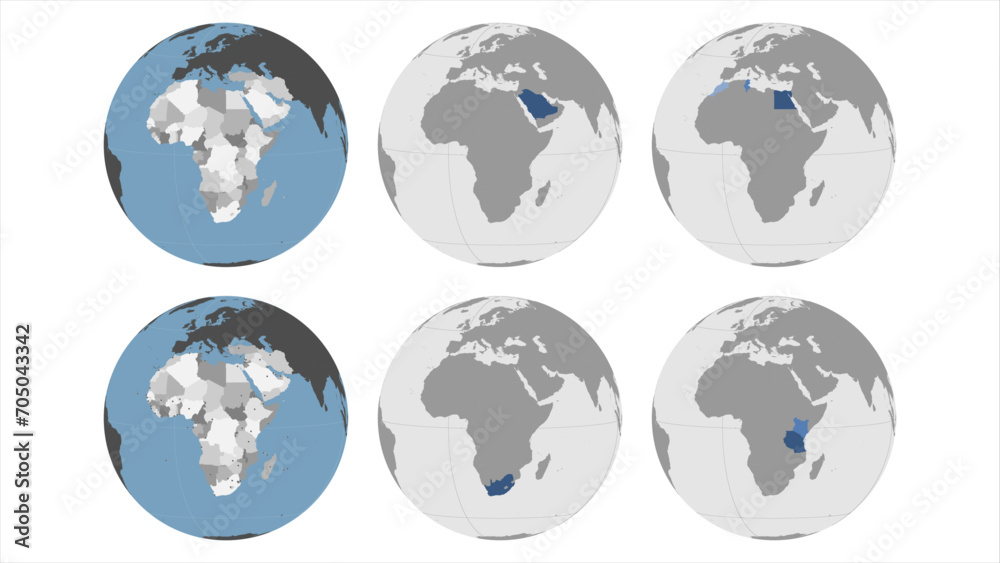 Round Globe Vector Map with Africa, Middle East Countries highlighted ...