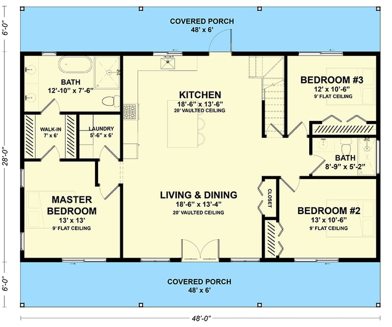 3-Bedroom 1-Story Hill Country Style Farmhouse with Large Rear Porch ...