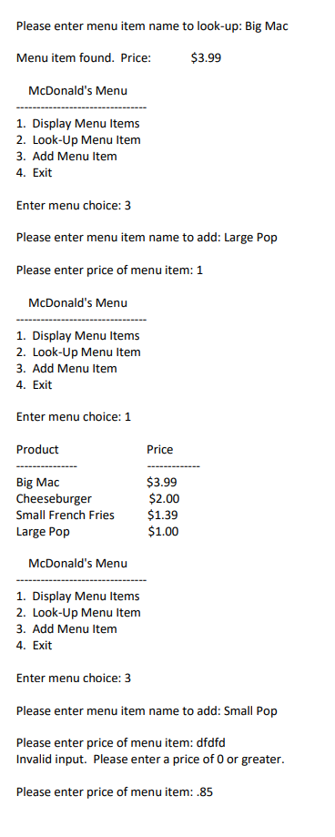 Solved Options menu Your program will have 4 functions - | Chegg.com